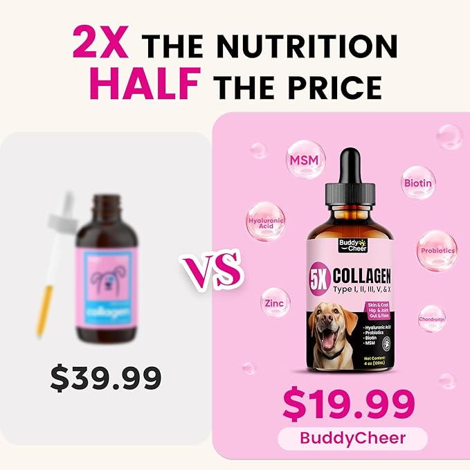 【Easy-to-Use Liquid】Our liquid collagen drops, made with natural ingredients, feature a bacon flavor pets love and are easy to mix into food or water. Designed for dogs and cats of all ages and sizes, it provides flexible, weight-based dosing—perfect even for picky eaters. A simple daily boost to support skin, coat, and joint health, this collagen supplement can also be used for cats to help maintain mobility and support a healthy skin & coat appearance.