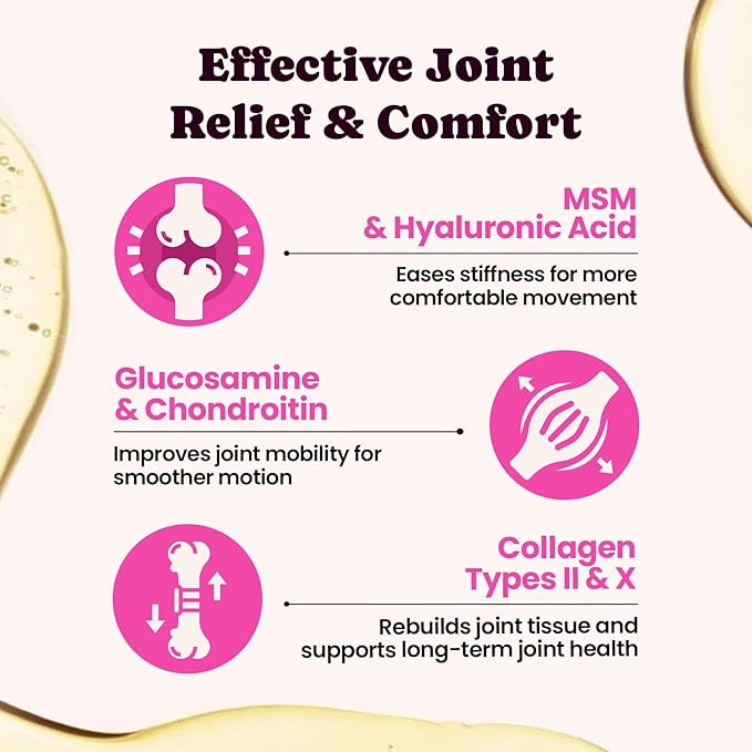 【Joint & Digestive Wellness】Formulated with MSM, Glucosamine, and Chondroitin, this collagen supplement for dogs supports joint health, comfort, and mobility—ideal for senior dogs and large breeds. Added probiotics help maintain a balanced gut flora, supporting digestion and making it gentle for dogs and cats with sensitive stomachs.